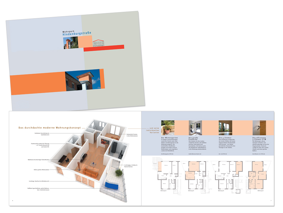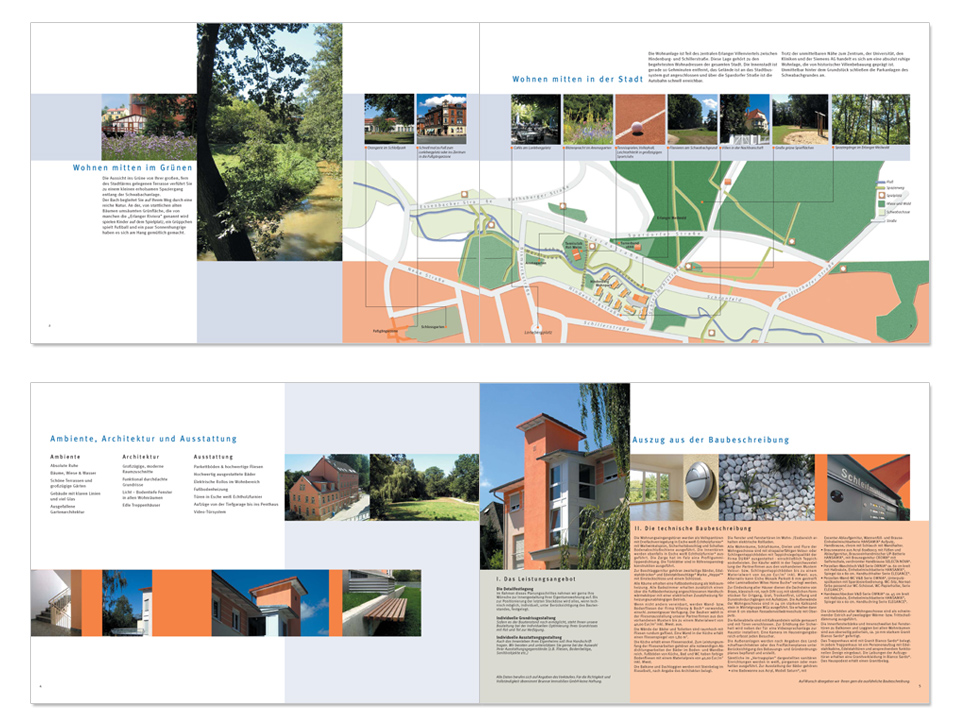 Umfangreiches Exposé für die Vermarktung einer Wohnanlage in Erlangen.